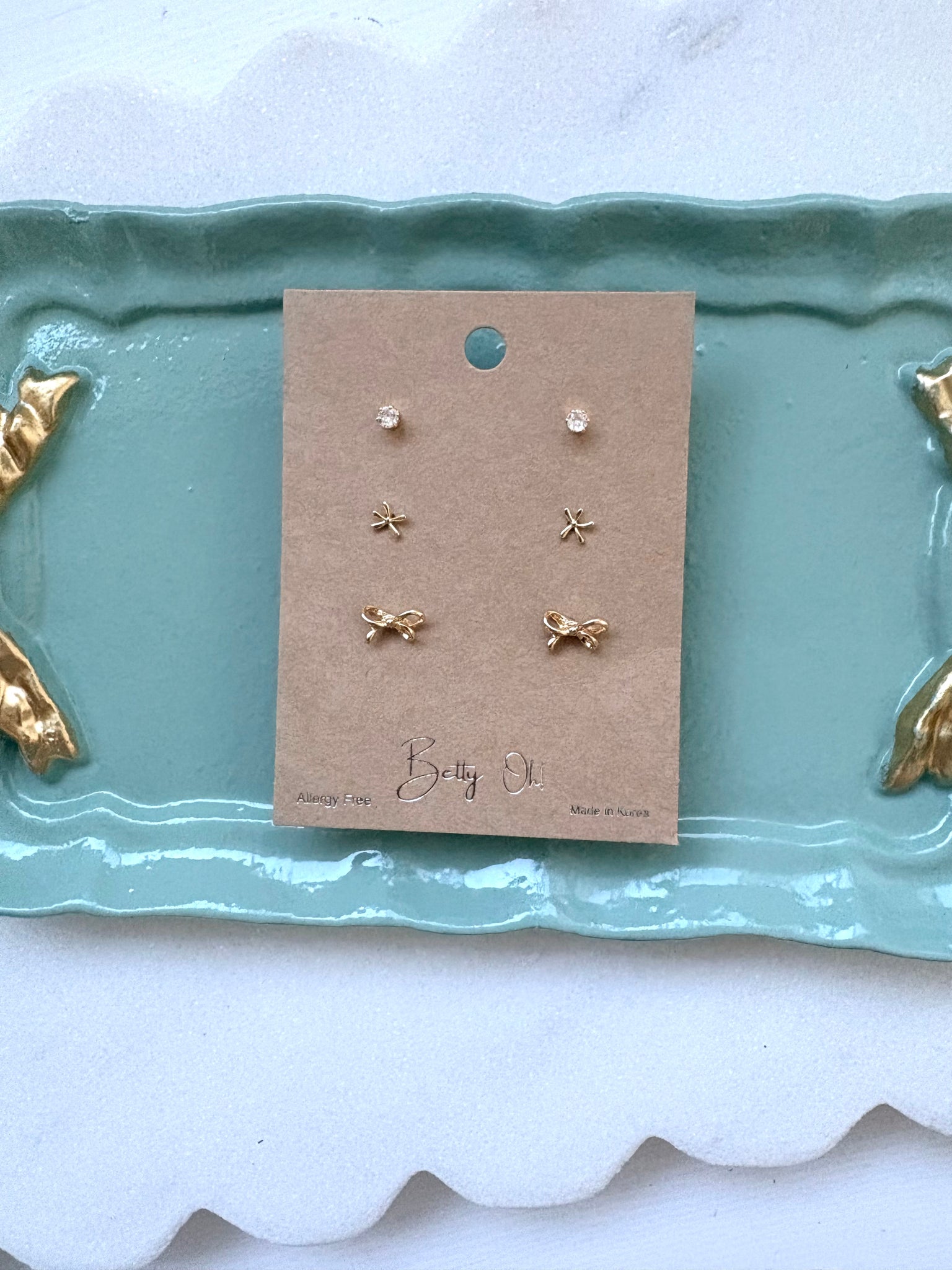 Flower Bow 3 Piece Set Mini Earring- Sterling Silver