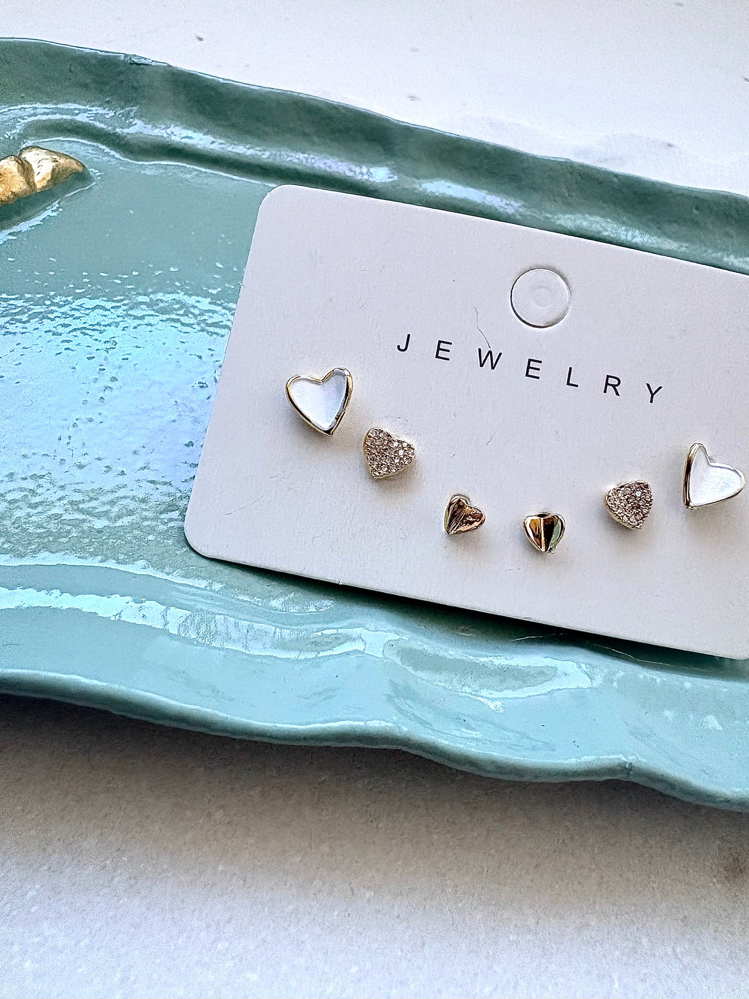 Heart 3 Piece Set Mini Earring- Sterling Silver