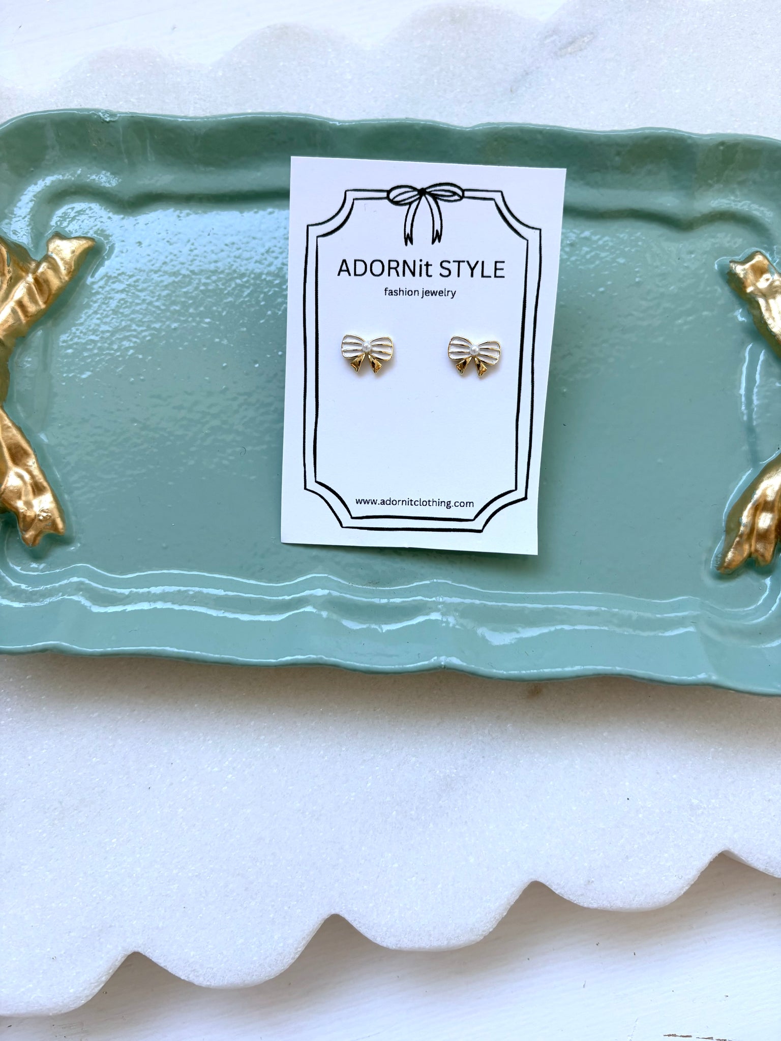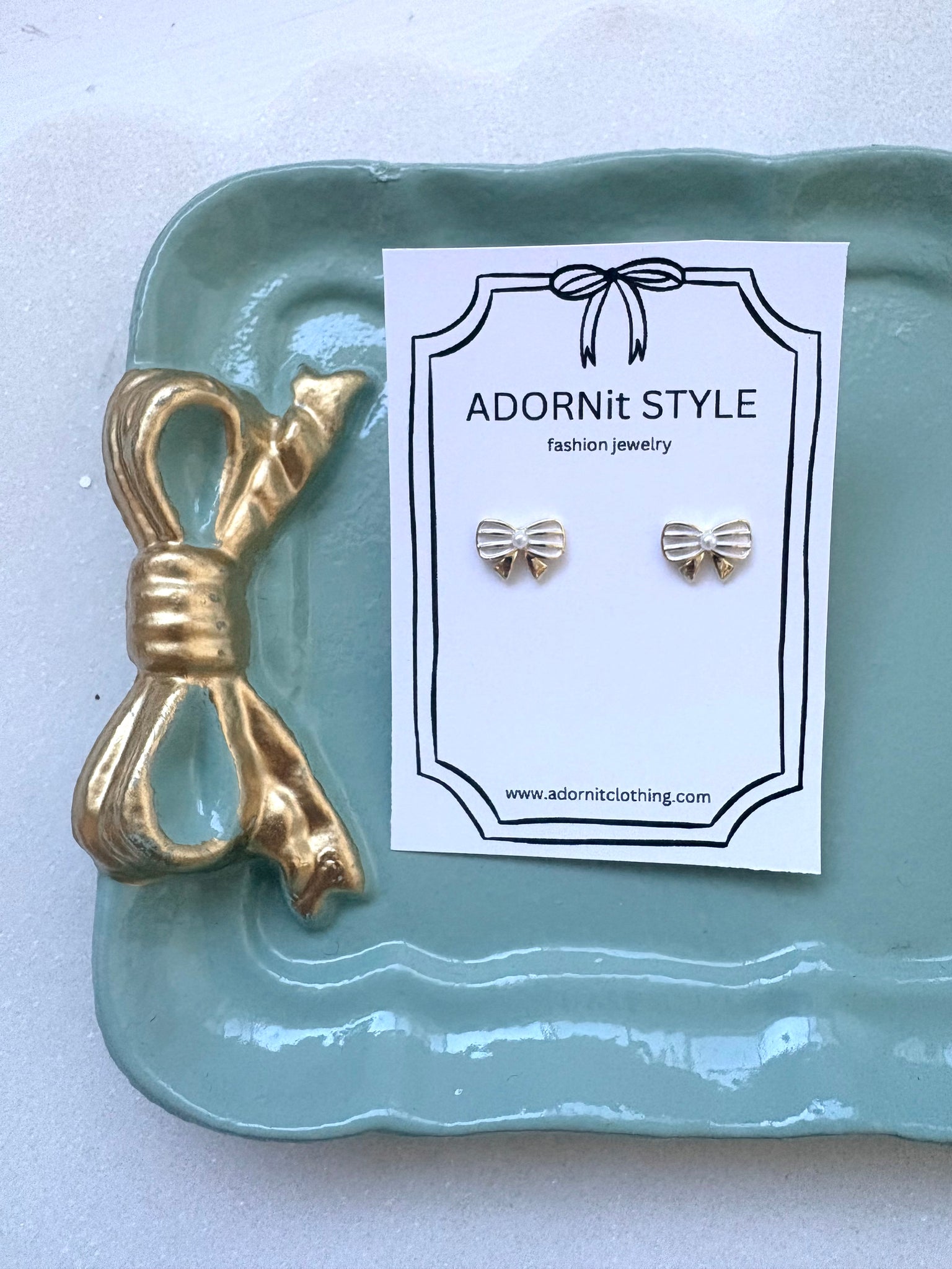 • Load image into Gallery viewer, Pearl Bow Mini Earring- Sterling Silver