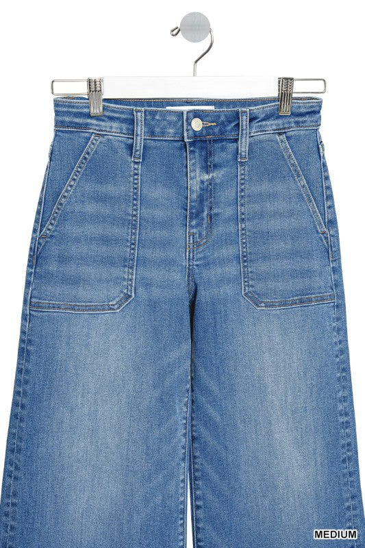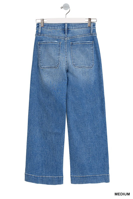 CROPPED WIDE LEG DENIM PANTS FRONT RISE: 9.75", INSEAM: 26" approx. LEG OPENING: 21" approx. -MEASURED FROM SIZE 26 ** COLOR MAY VARY SLIGHTLY DUE TO MONITOR RESOLUTION