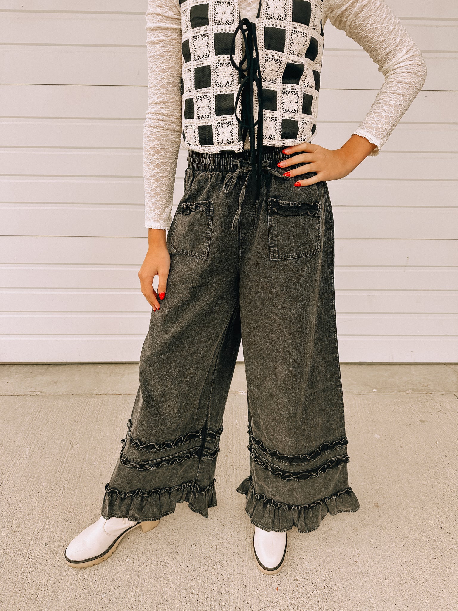 sassy, flirty, & girly in these ruffle trim pants