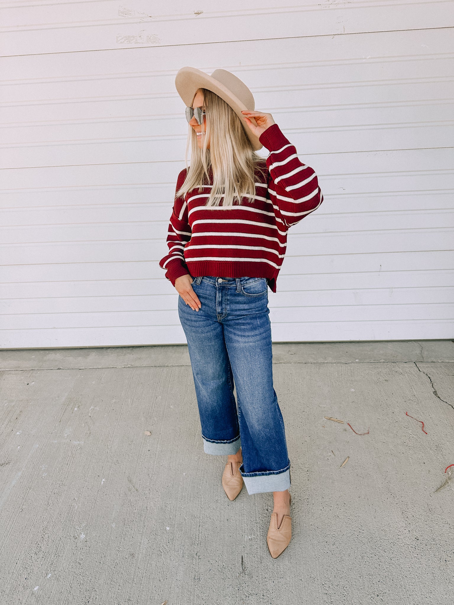 Fit: HIGH RISE ZIPPER FLY PANTS - Hem can be CUFFED OR UNCUFFED