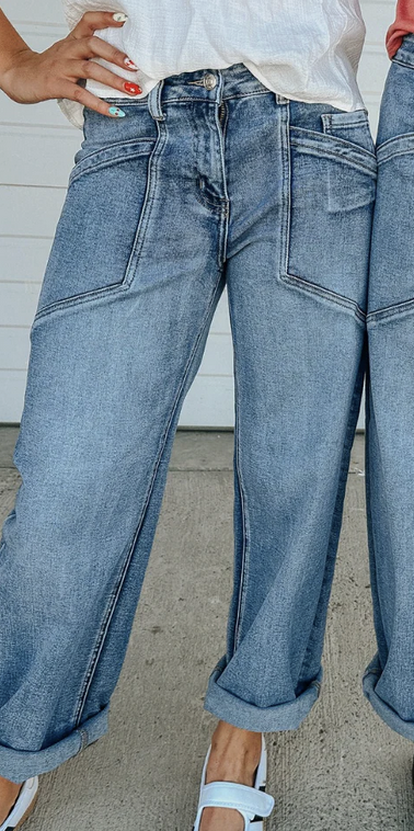 Fit: HIGH RISE ZIPPER FLY PANTS - Hem can be CUFFED OR UNCUFFED